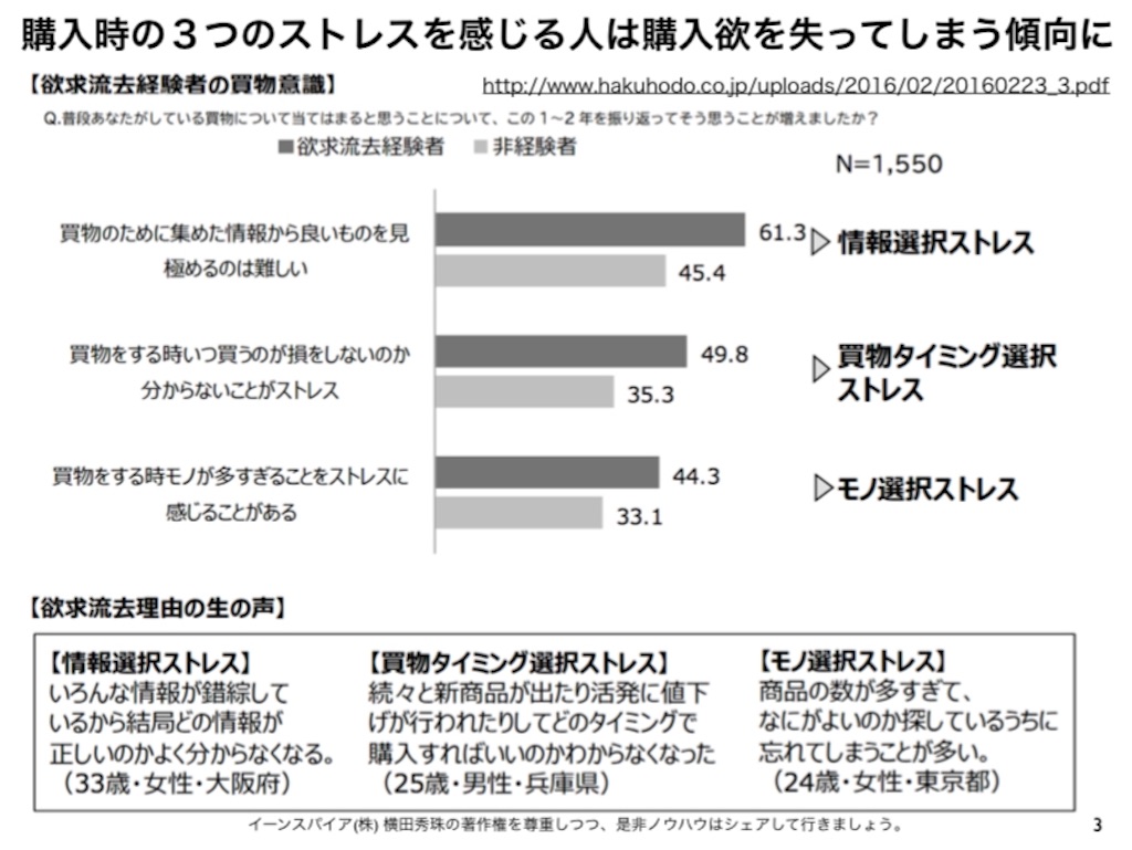 事前に情報収集をしなくても、日本のような先進国では高品質な商品を購入できたり、サービスを受けられることもその要因の一つですが、購入時の情報収集がストレスになる場合が多いようです。